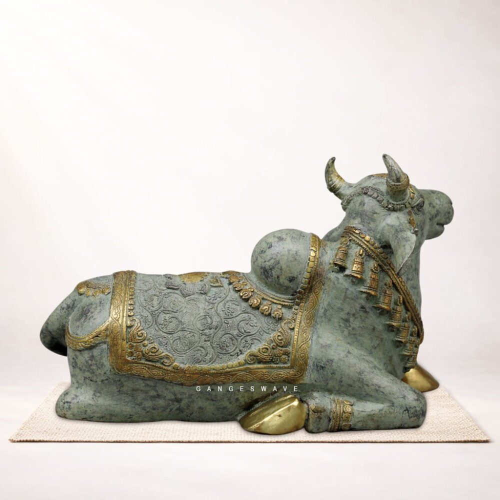 Antique Finish Brass Nandi Statue 20 inches – Sacred Guardian Bull Sculpture for Luxury Home Décor