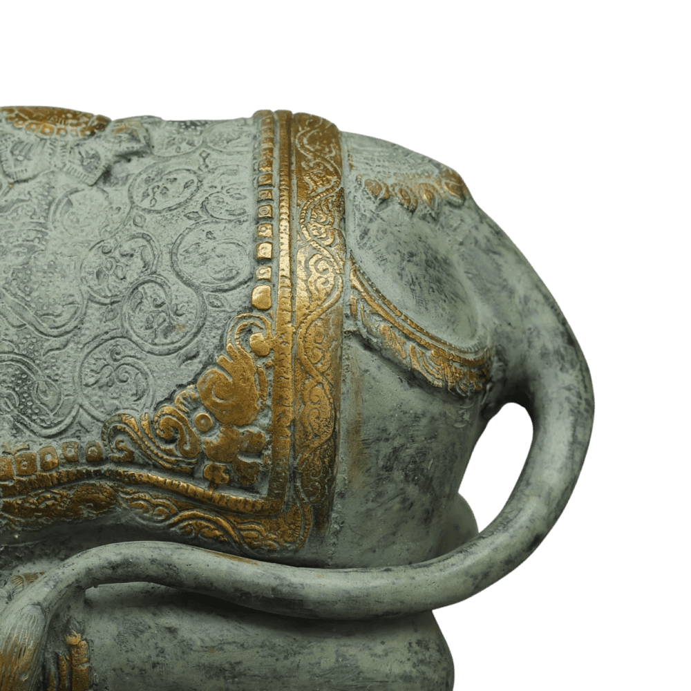 Material: Brass Superfine | Height: 14 inches| Width: 20 inches | Depth: 10 inches | Weight : 18.4 Kgs | Colour: Antique green patina and muted antique gold | Crafting Technique: Handmade | Origin : India