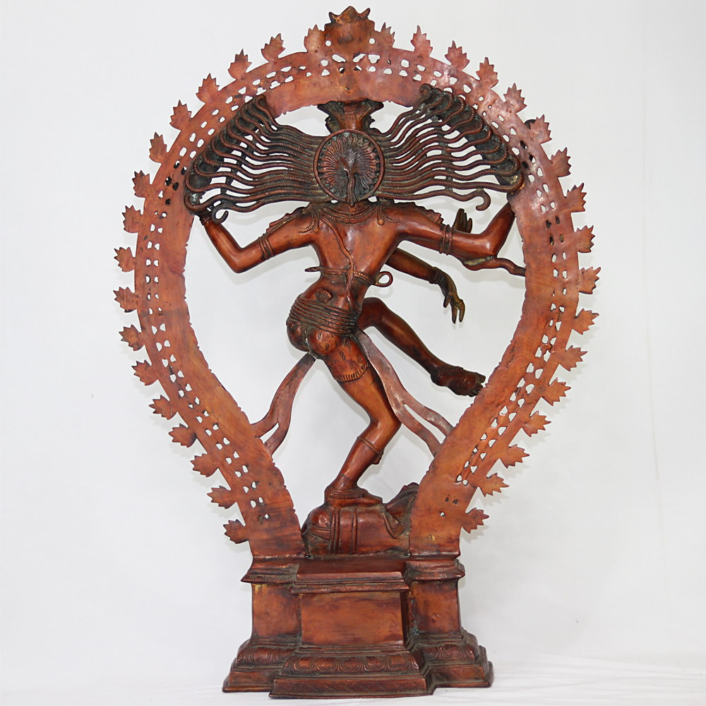 Here, Shiva embodies those perfect physical qualities as he is frozen in the moment of his dance within the cosmic circle of fire that is the simultaneous and continuous creation and destruction of the universe. The ring of fire that surrounds the figure is the encapsulated cosmos of mass, time, and space, whose endless cycle of annihilation and regeneration moves in tune to the beat of Shiva’s drum and the rhythm of his steps.