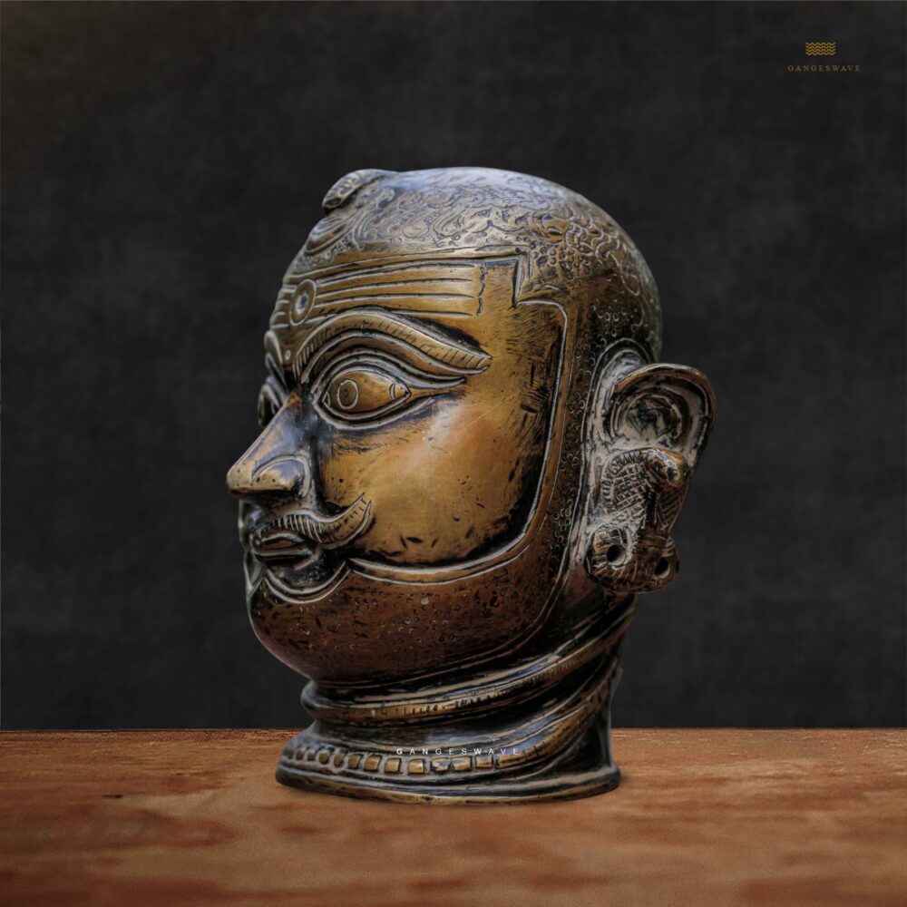 Artistic Vintage Finished Shiva Brass Mukhalinga – 6 inches