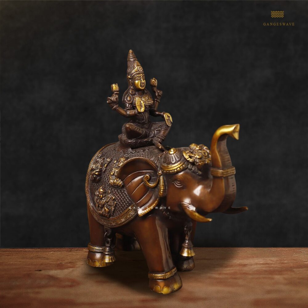Astha Lakshmi brass statue made out of superfine brass. The elephant body is sculpted with astha lakshmi avatar . The statue is perfect for your puja places or decor.