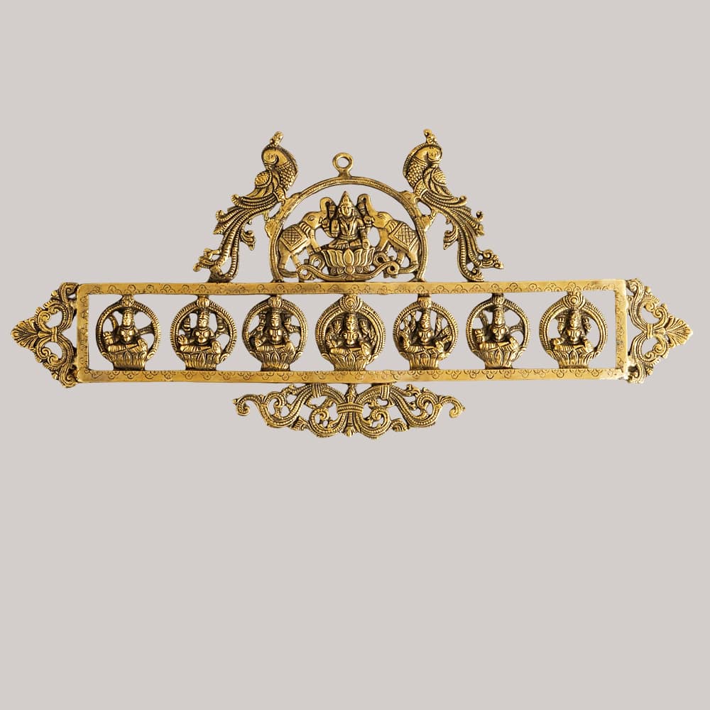 This beautiful brass Asthalakshmi wall hanging is crafted in finest brass to bring a spiritual essence and blessing for your home.