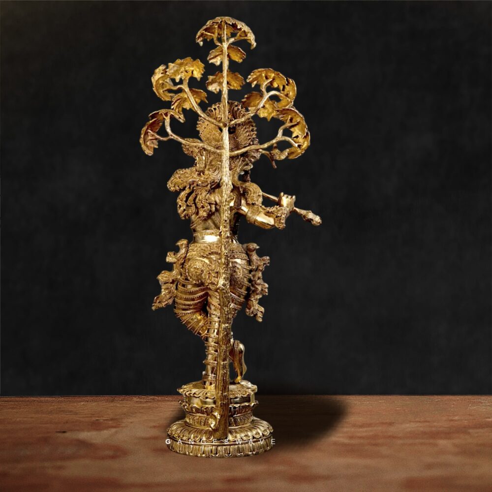 Large Krishna Brass Statue with Kadamb Tree – 56 inches