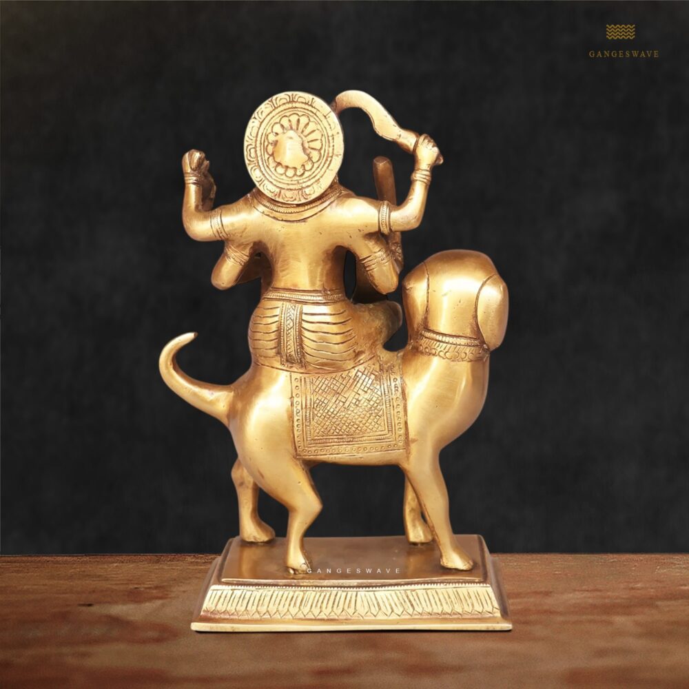 Handcrafted brass Kaal Bhairav murti with dog vahana for home temple