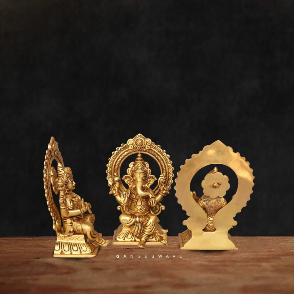Brass Lakshmi Ganesh Saraswati Idol Set by Gangeswave