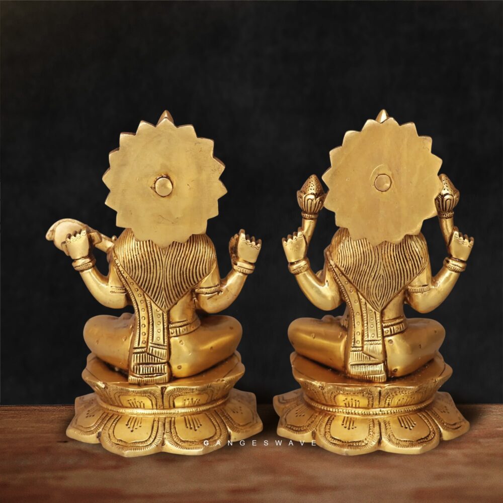 Maa Lakshmi, the Goddess of wealth and abundance, and Maa Saraswati, the Goddess of wisdom and learning, together symbolize holistic prosperity — both material and intellectual. Each statue is meticulously detailed, reflecting fine Indian craftsmanship and rich cultural heritage.