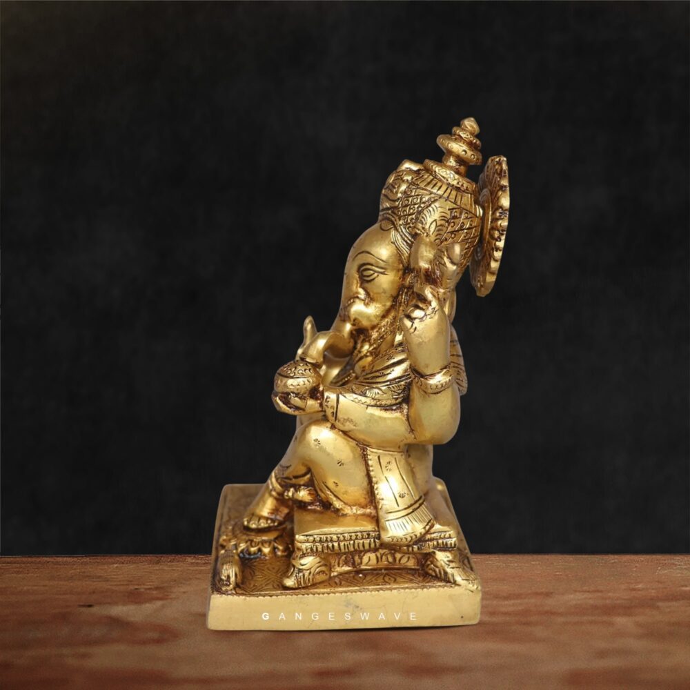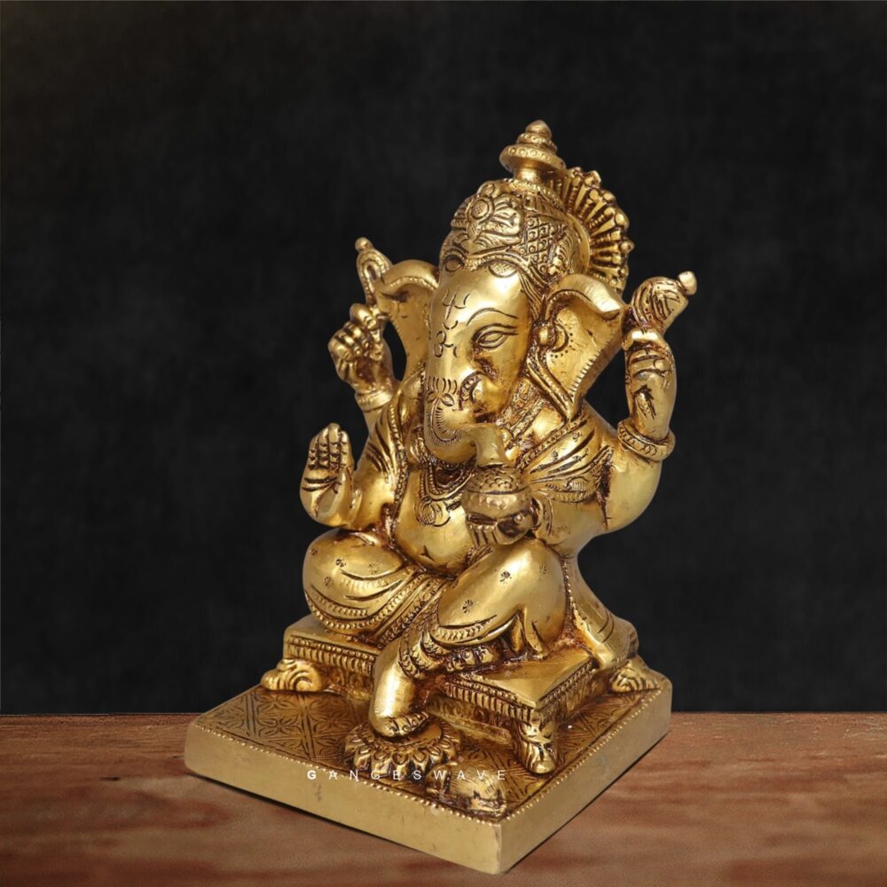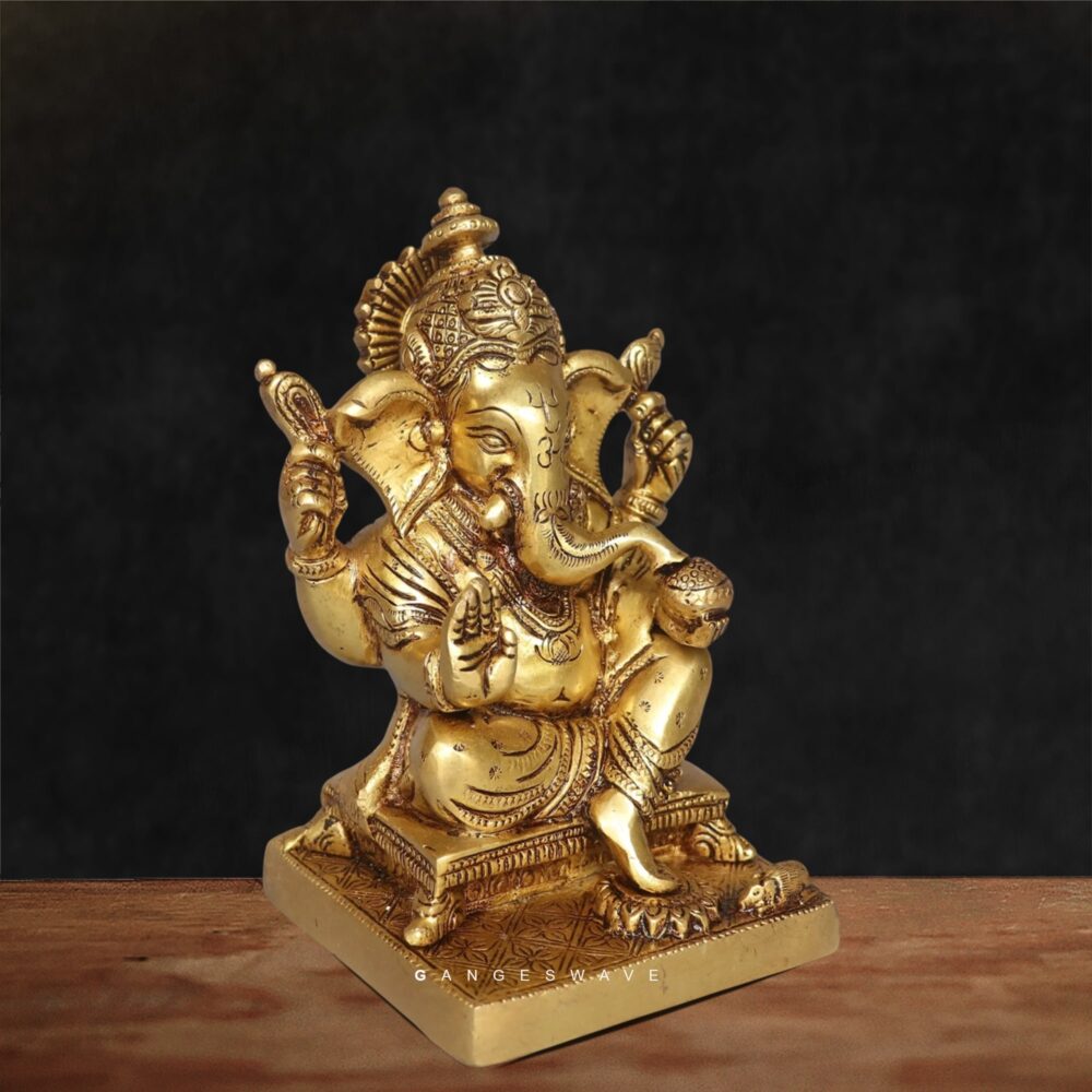 Brass Lord Ganesha Idol by Gangeswave – Handcrafted Hindu God Statue for Home & Office