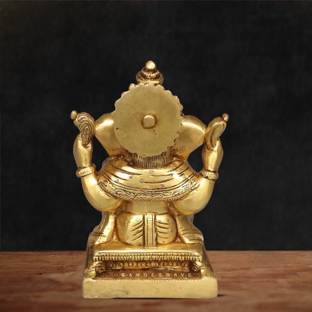 Handcrafted Brass Lord Ganesha Idol by Gangeswave. Skillfully cast in pure brass, this elegant statue depicts Lord Ganesha, the remover of obstacles and harbinger of success, seated gracefully in a traditional posture.