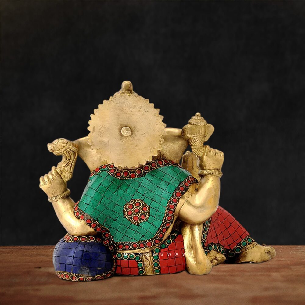 Brass Lord Ganesha Statue with Stone Inlay – 9.5 inches