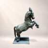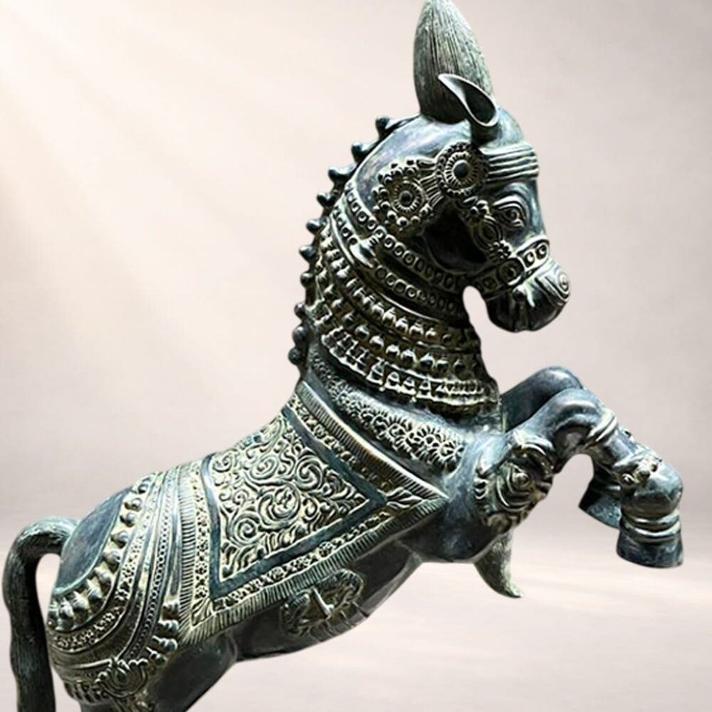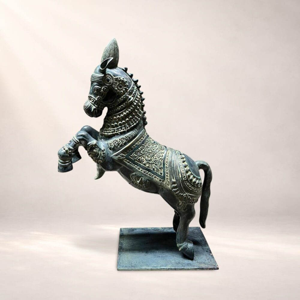 Handcrafted Brass Rearing Horse Statue, a timeless symbol of power, prestige, and prosperity. Designed with intricate detailing and finished in an elegant vintage green patina, this majestic brass horse sculpture blends classical artistry with contemporary luxury styling.