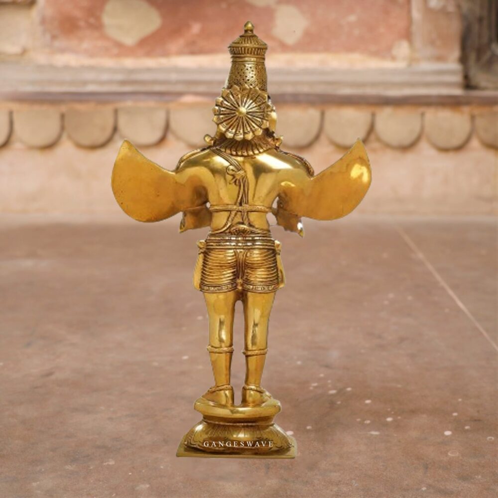 This exquisite statue captures the divine essence of Garuda, the mythical bird and mount of Lord Vishnu, renowned in Hindu and Buddhist traditions for its power, speed, and unyielding loyalty.The statue is thoughtfully sized to be a striking centerpiece, yet versatile enough to fit on a variety of surfaces.
