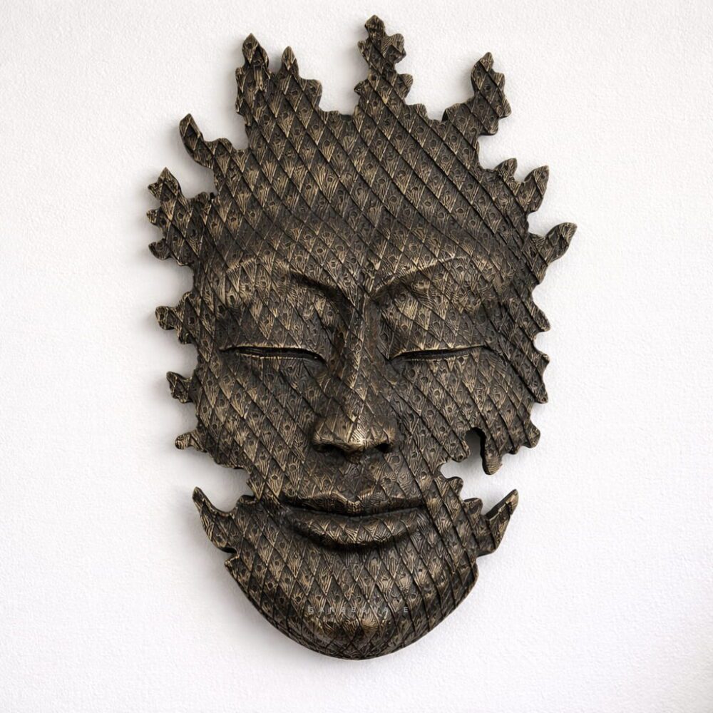 This limited-edition brass artwork is a poetic expression of fragmentation and wholeness—where silence speaks volumes and imperfection reveals divine beauty. Drawing from both Buddhist philosophy and contemporary sculptural abstraction, this piece symbolizes inner stillness amidst chaos. The fragmented silhouette is purposefully incomplete—echoing the Japanese concept of Wabi-Sabi, the acceptance of transience and imperfection. The face, with its closed eyes and subtle smile, radiates peace, while the jagged, flame-like extensions suggest awakening and spiritual ascension.