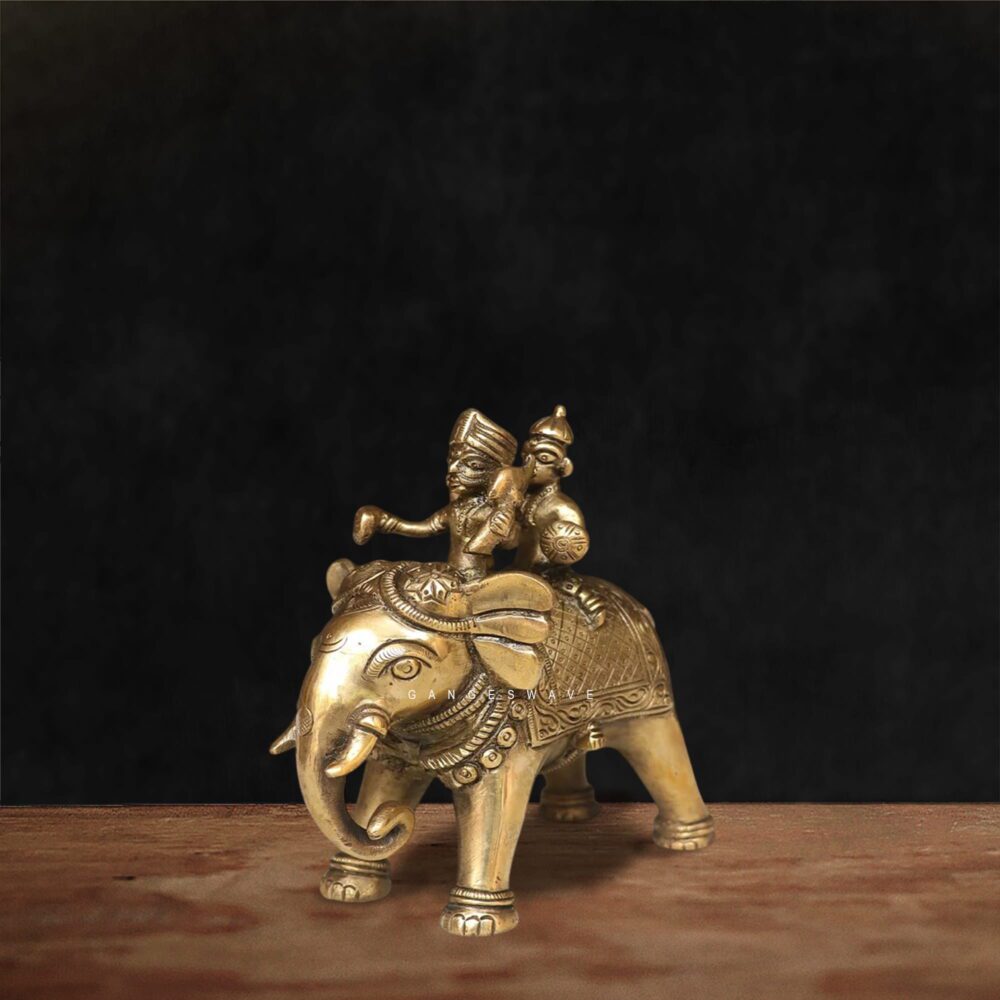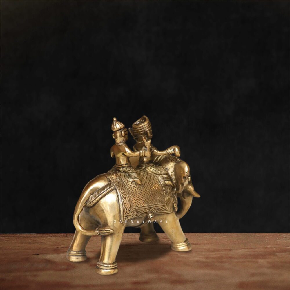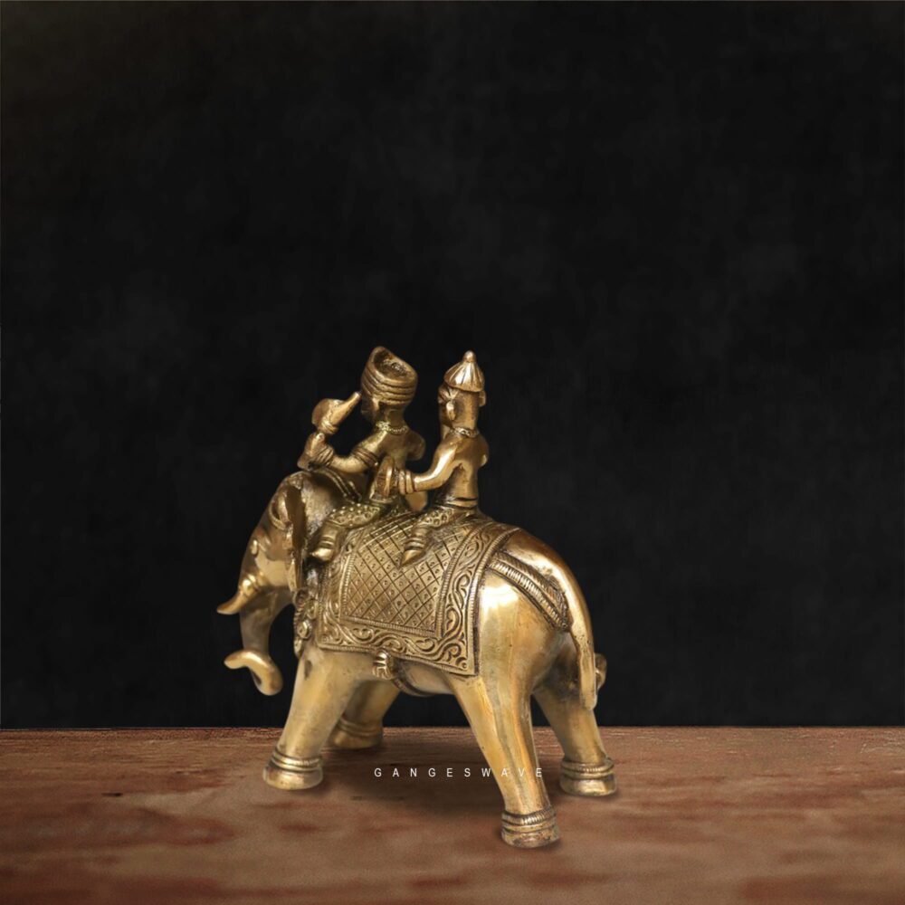 Brass Elephant Ride Figurine | Royal Indian Decor Artifact
