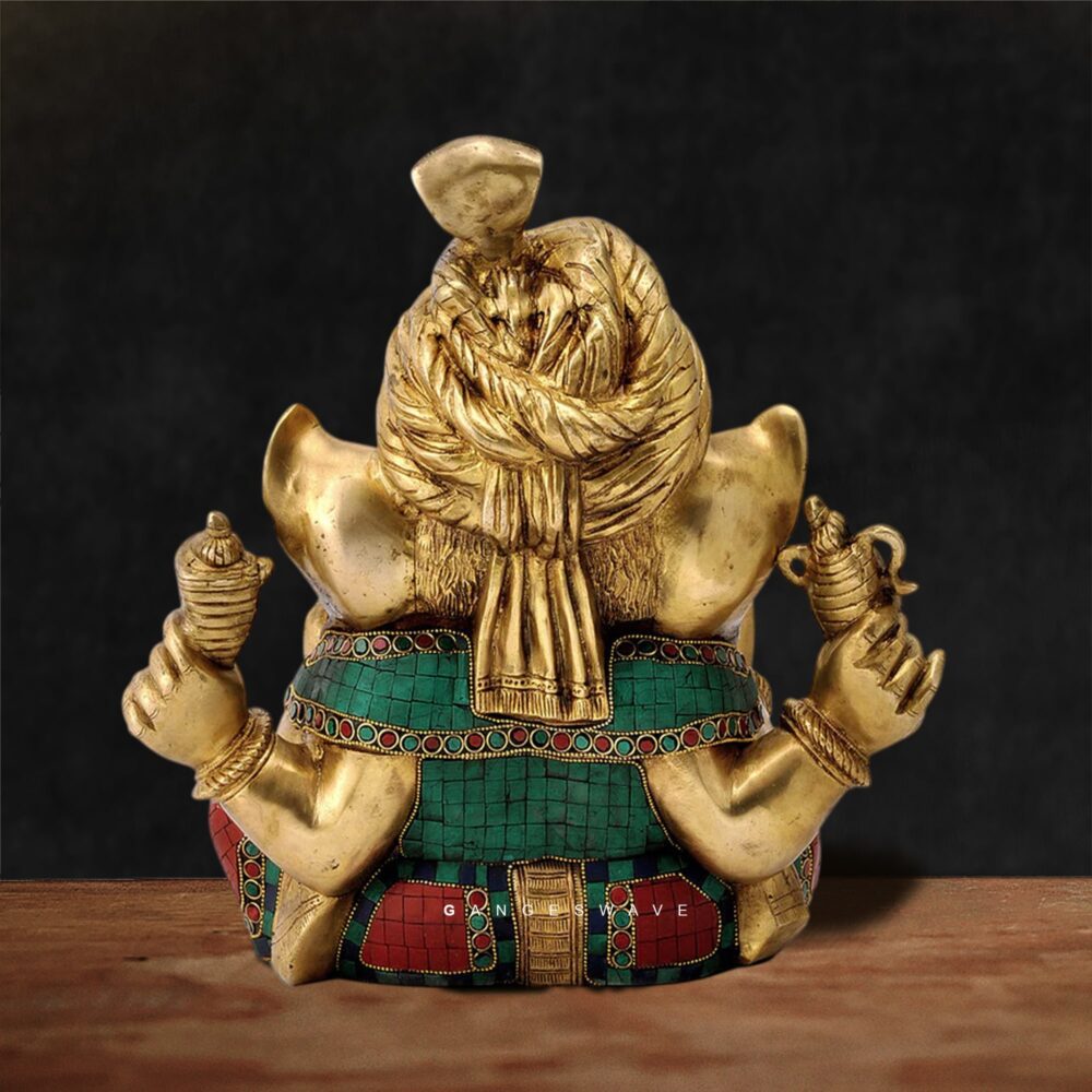 Ganesha Brass Murti with Stone Inlay Work – 14 inches