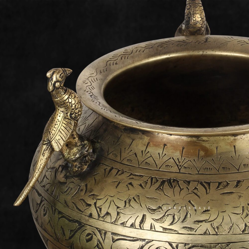 Premium Handcrafted Brass Planter with Engraved Peacock Handles | Vintage Indian Home Décor