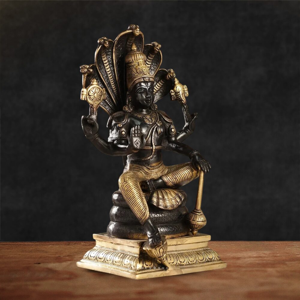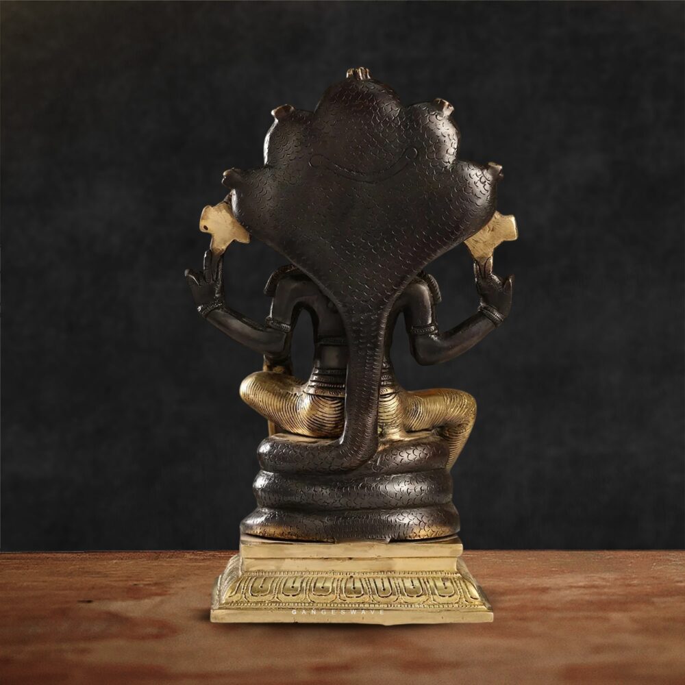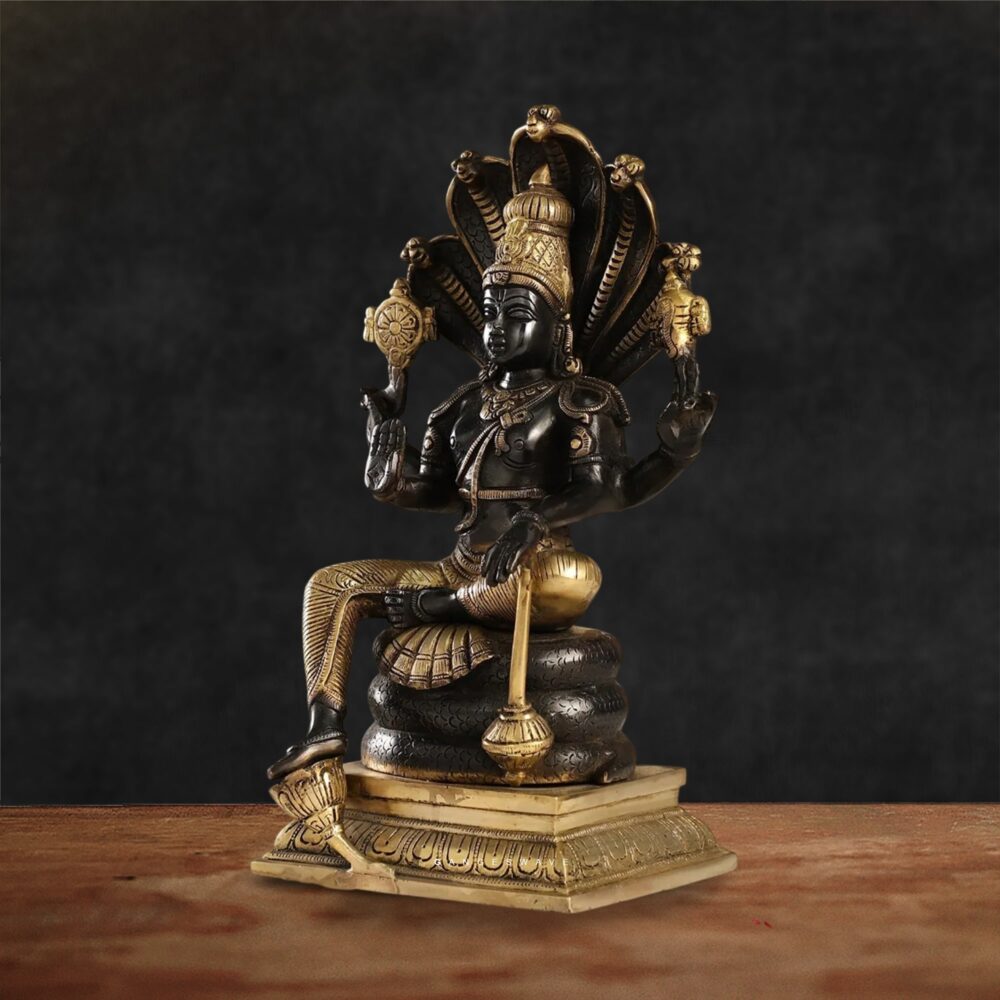 Charcoal Black Brass Vishnu sitting on Seshnaag – 14″