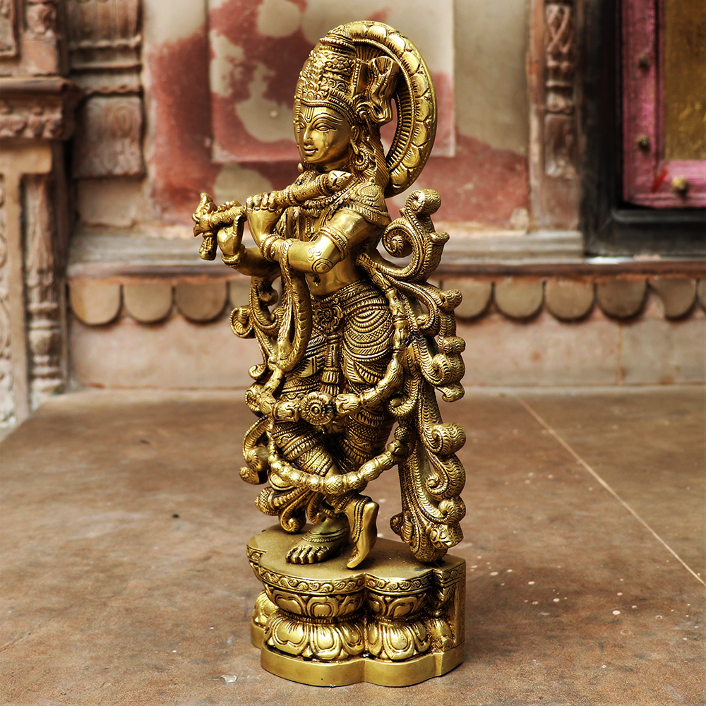 DETAILS Material: Brass Height: 16 inches Width: 8 inches Depth: 4 inches Weight: 6.5 Kgs Colour: Golden brass Crafting Technique: Handmade _______________________________________________________________________________________________ CARE Use a soft brush and dry cloth for dusting and cleaning. ________________________________________________________________________________________________