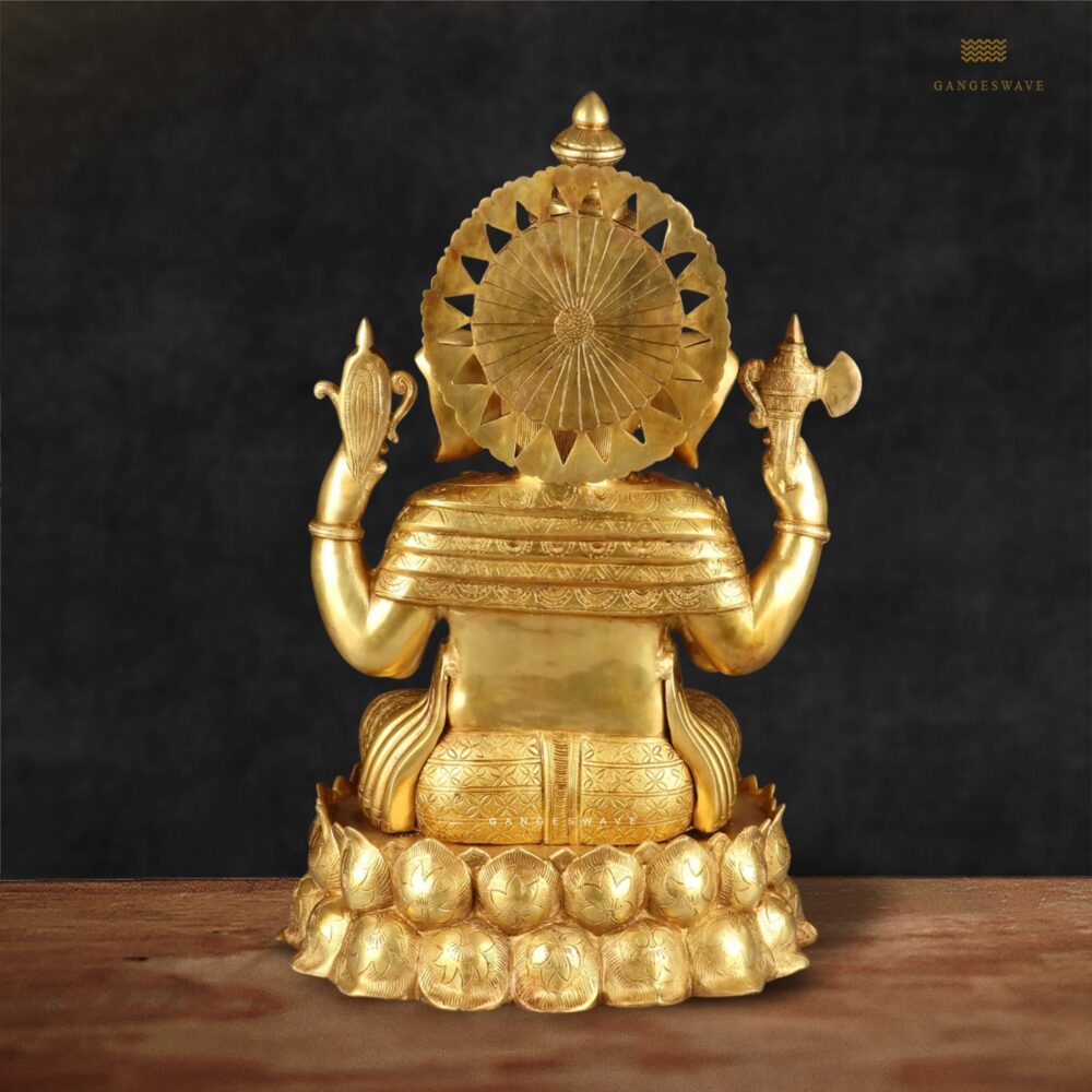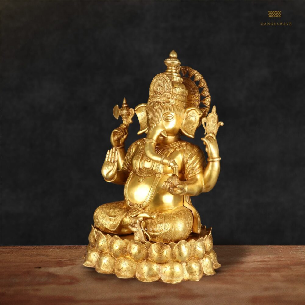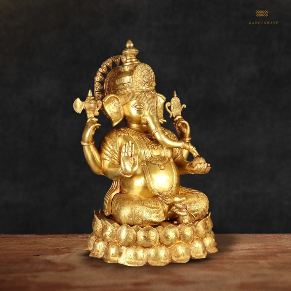Ganesh Brass Murti Sitting on Lotus – 24 inches