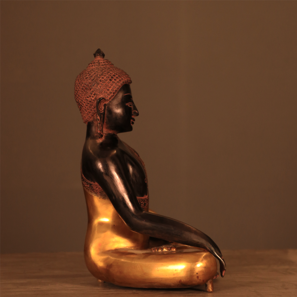 Since the 8th century with the rise of the Pala and Chola empire in South India and Bangladesh brass statues have played a key role in shaping the mythology surrounding the Hindu religion. They have given the people a tangible deity to worship as well as bringing the stories surrounding the Hindu gods into their lives. Now you have the opportunity to experience the height of brass sculpture by bringing this unique piece of Buddha to reflect your inspiration and personality.