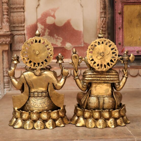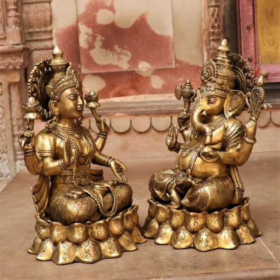 GOLDEN GANESH AND LAXMI BRASS STATUE