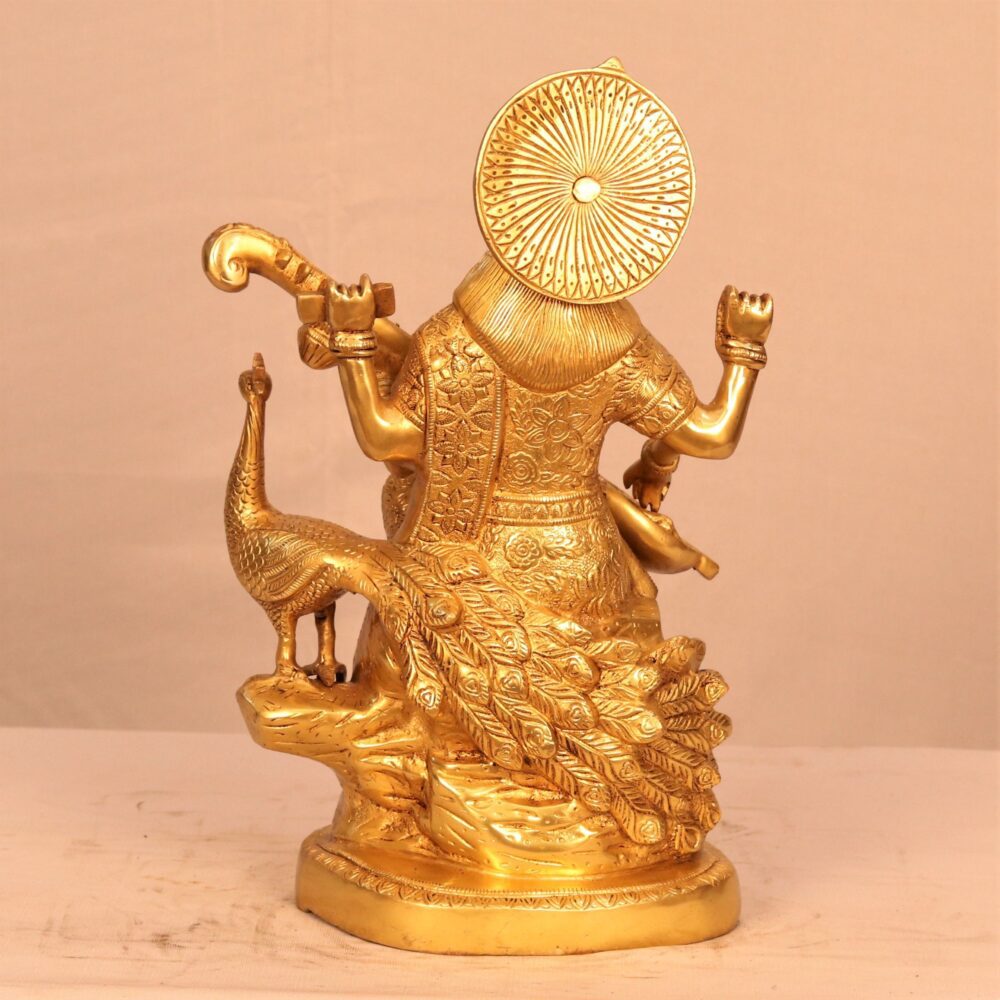 _______________________________________________________________________________________________ DETAILS Material: Brass Height: Including Base: 14.5 inches or 36.83 cms Width: 10 inches or 25.4 cms Depth: 8 inches or 20.32 cms Weight: 10 kgs or 22.04 pounds Colour: Golden brass Craftsmanship: Handmade _______________________________________________________________________________________________ CARE Use a soft brush and dry cloth for dusting and cleaning. ________________________________________________________________________________________________