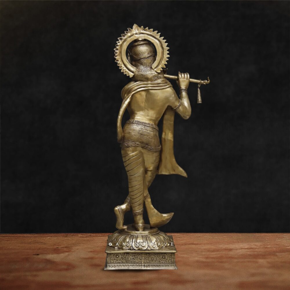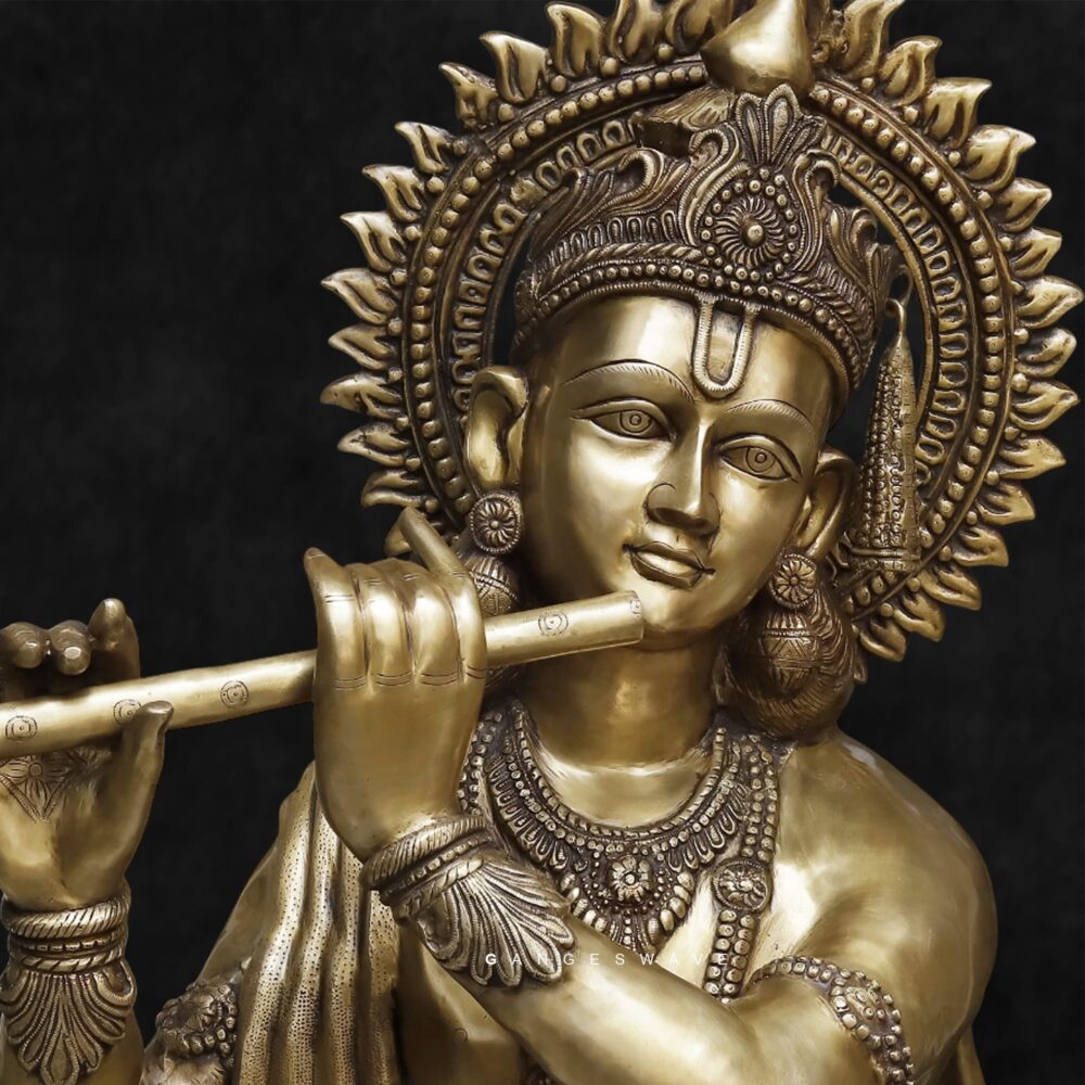Graceful Standing Brass Krishna Playing Flute – 79 inches