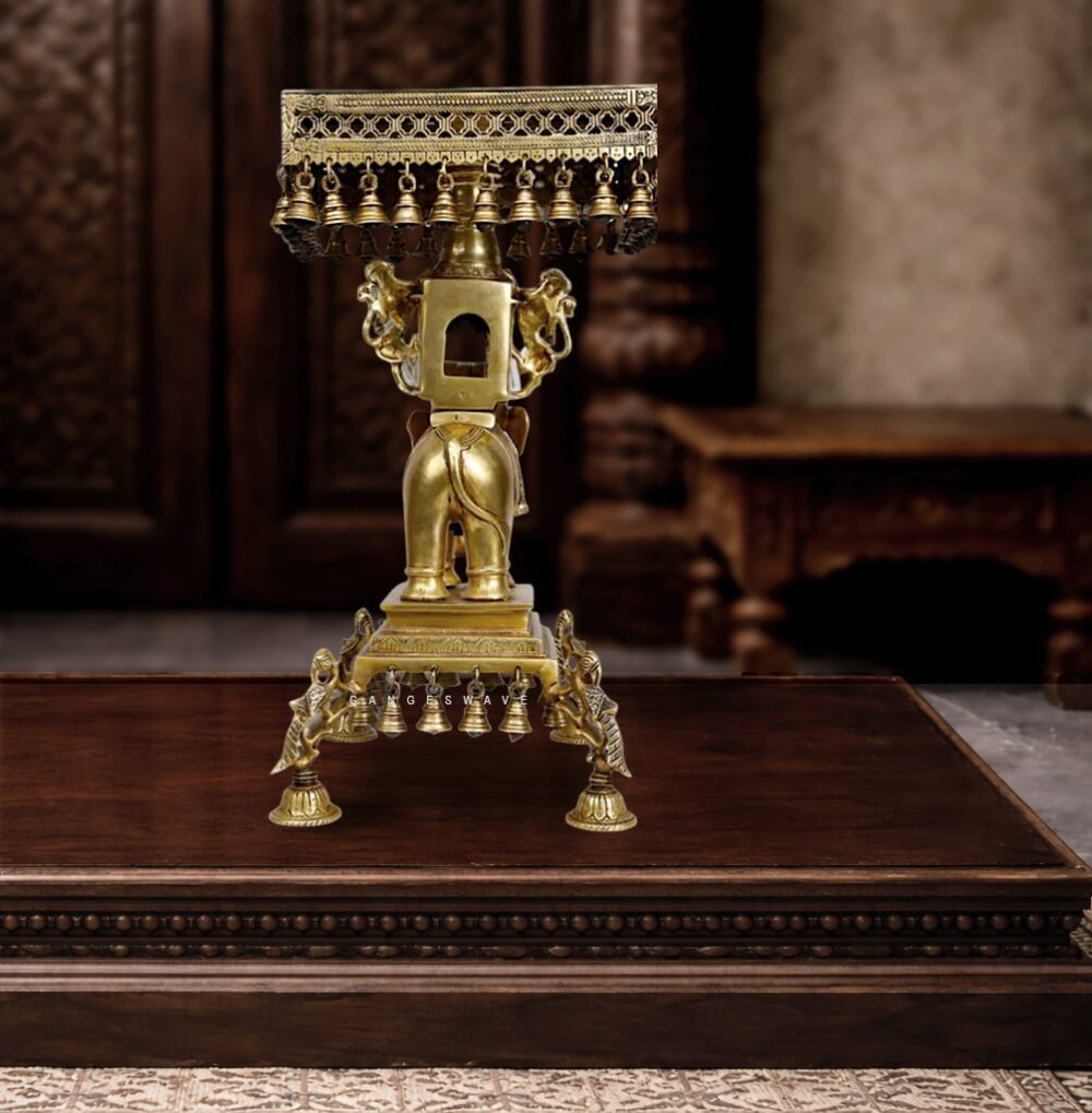 Material: Superfine Brass | Height :23 inches | Width : 12.5 inches | Depth : 12.5 inches |Weight: 21 Kg | Technique: Handmade | Colour : Golden butter brass patina |
