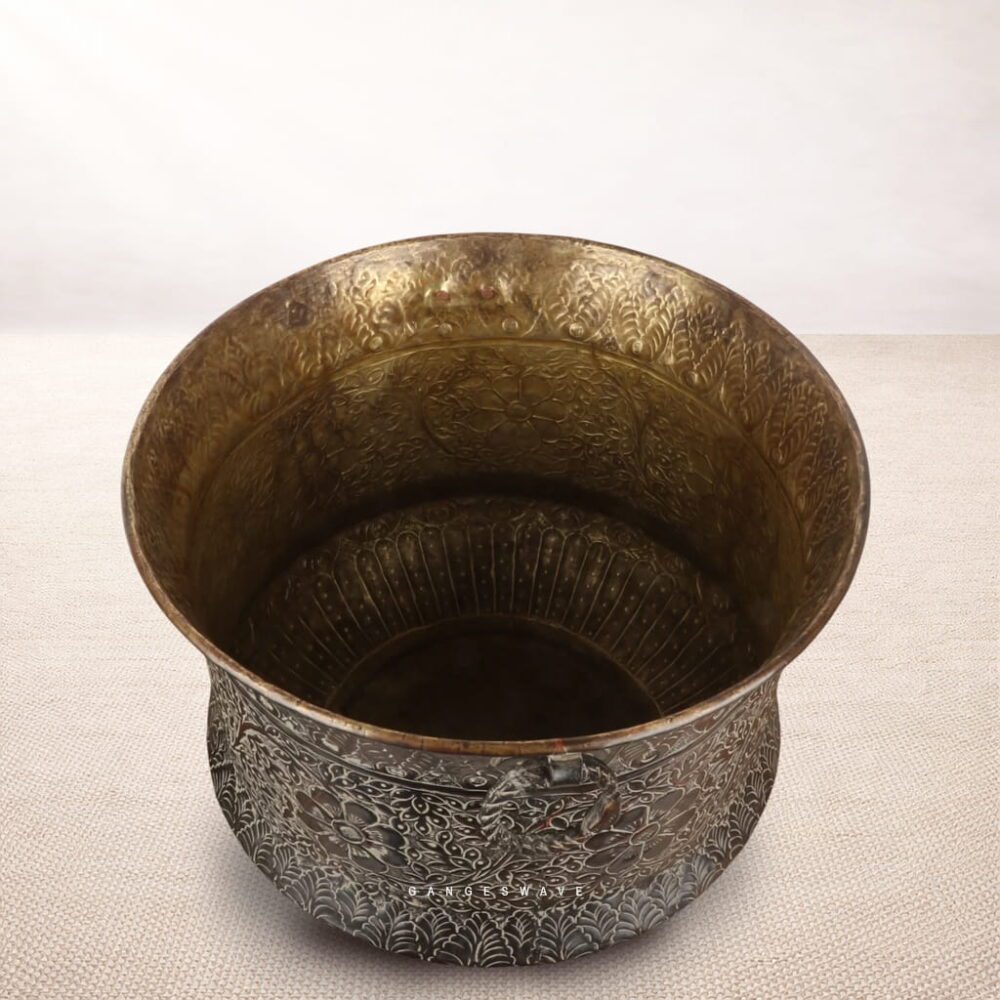 Handcrafted Vintage Finished Engraved Planter – Floral Carved Decorative Planter