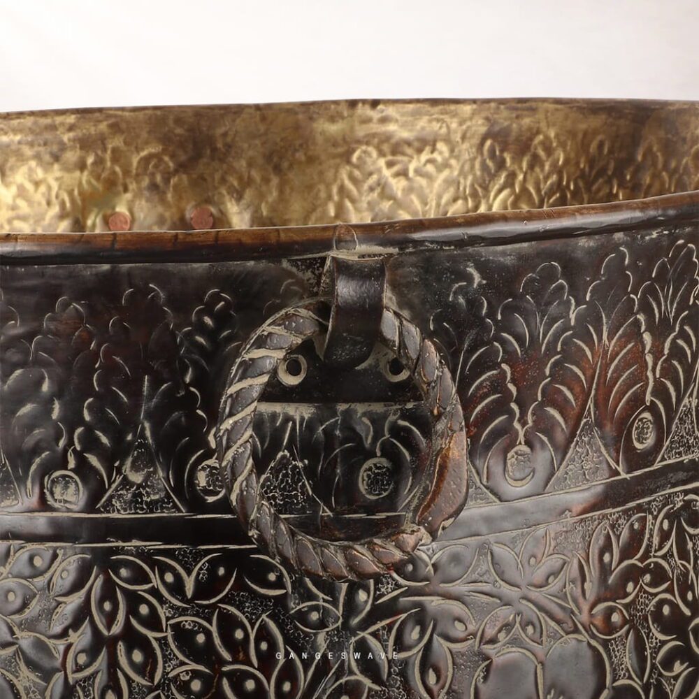 Featuring intricate floral carvings inspired by traditional Indian craftsmanship. Designed with a rich antique finish and detailed hand-engraved patterns, this statement décor piece instantly adds depth, sophistication, and character to any living space.