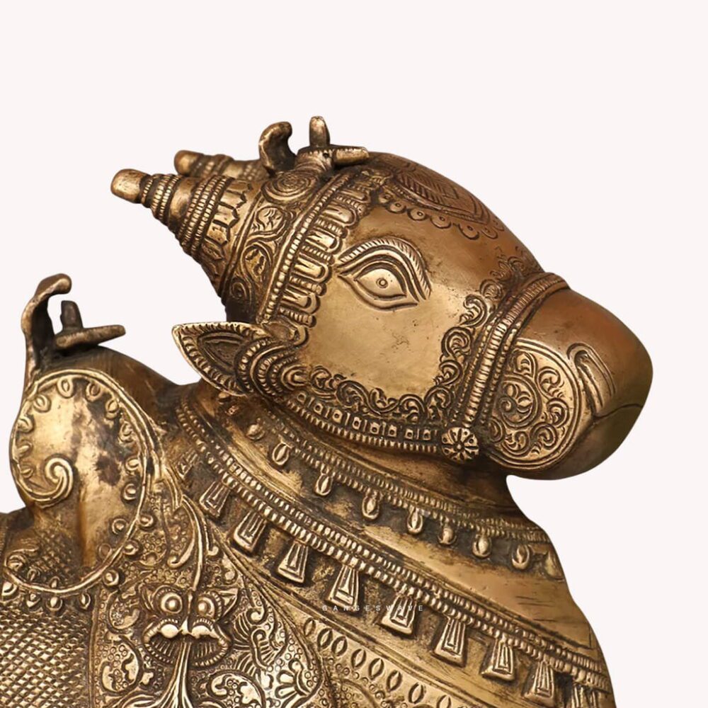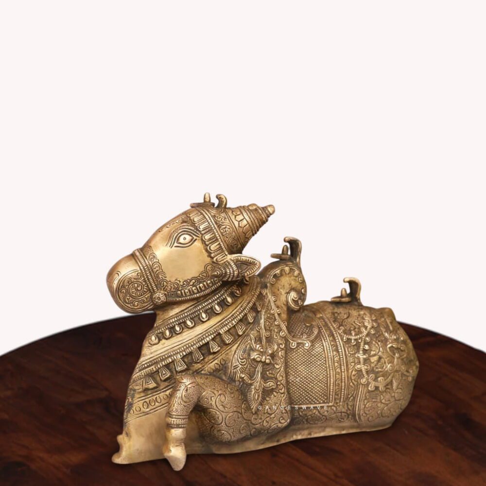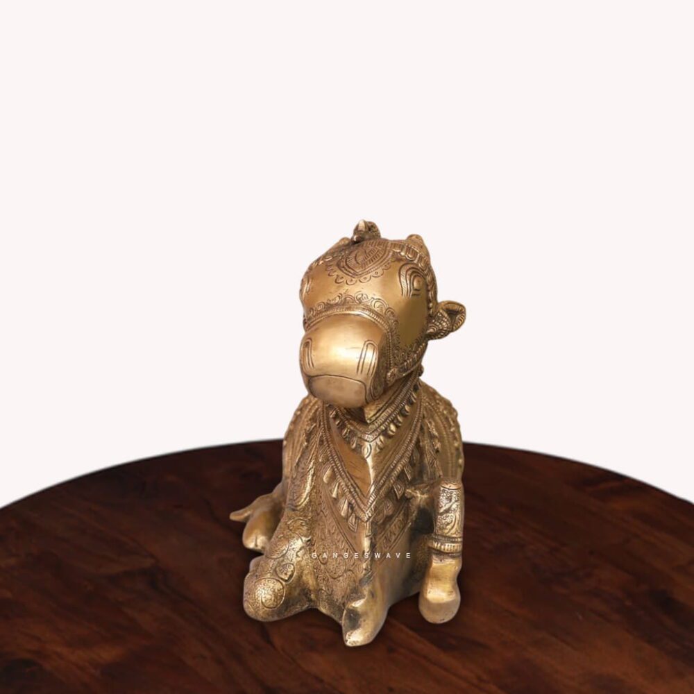 Intricately Engraved Brass Nandi in Antique Finish – 8 inches