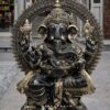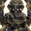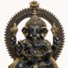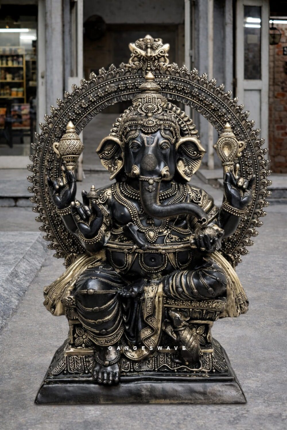 Large handcrafted brass Ganesh statue with antique black and gold patina for home temple decor