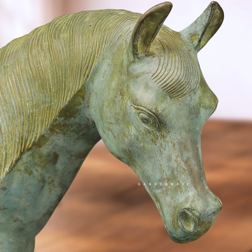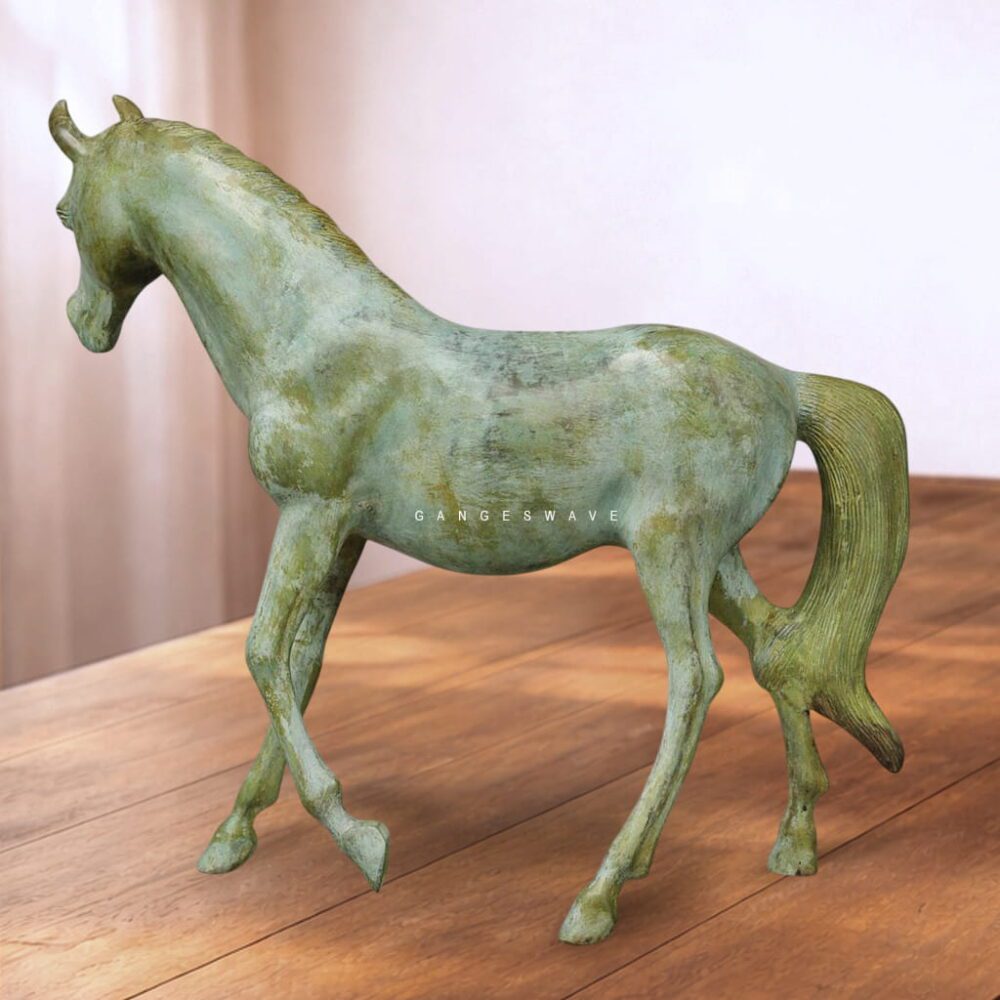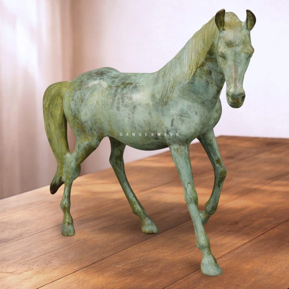 Luxury Handcrafted Brass Horse Statue with Antique Green Patina – Premium Home Décor Artifact