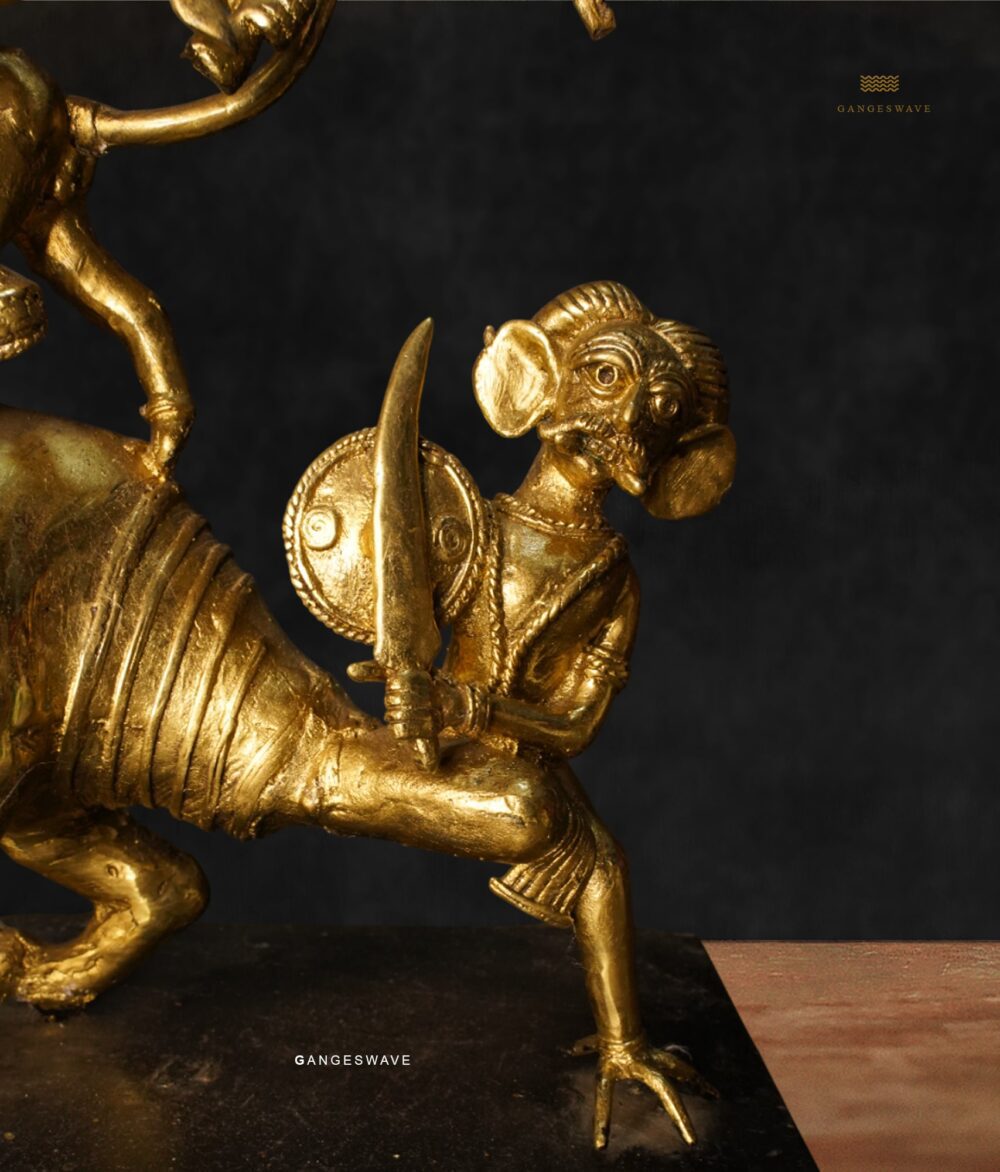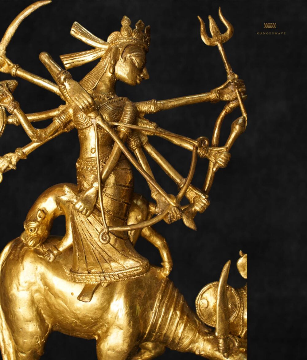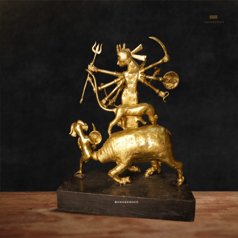 Mahishashur Mardini Artistic Brass Dokhra Showpiece – 13 inches
