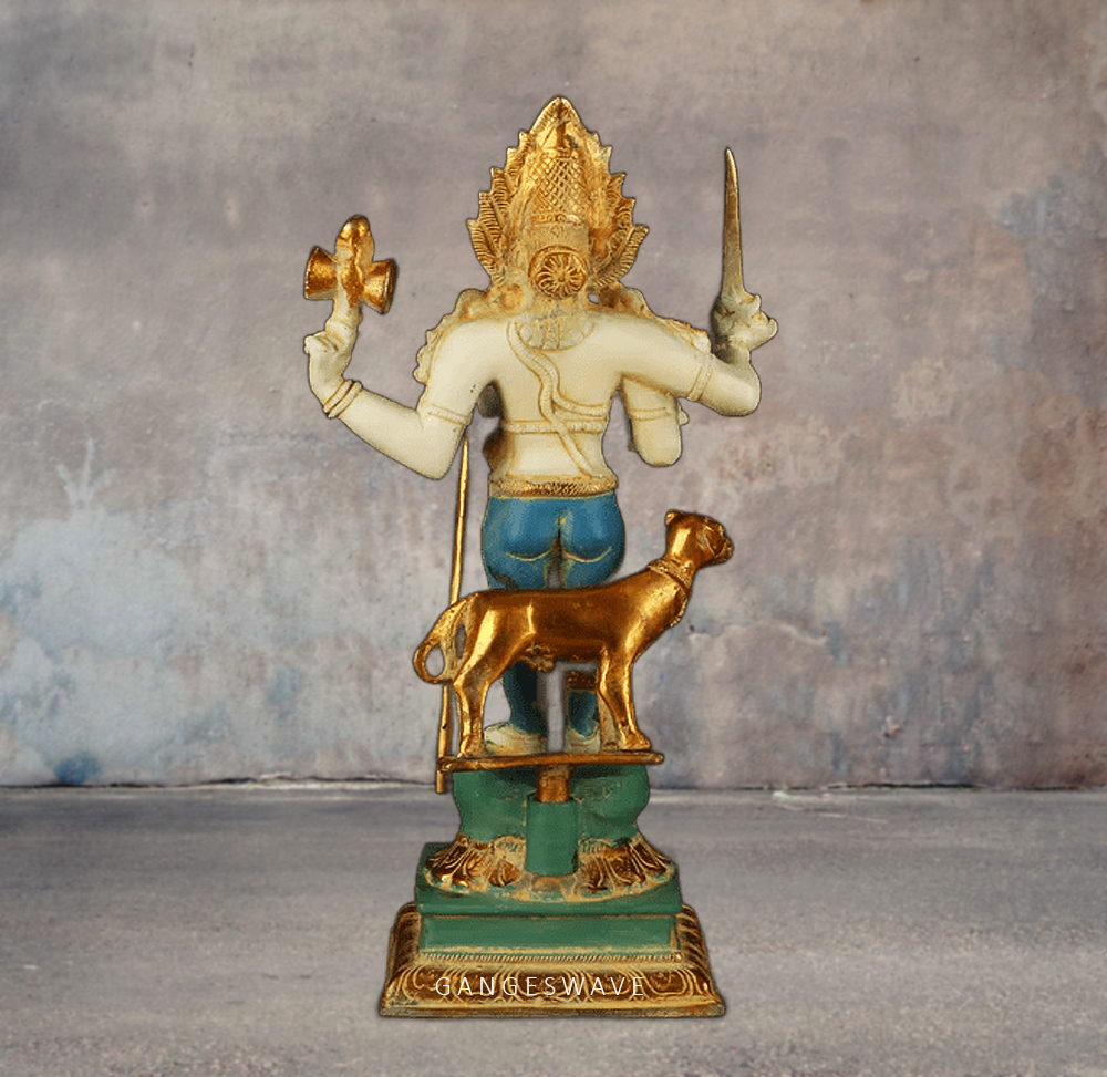 What sets this Kaal Vairaibh Brass Statue apart is its vibrant and captivating colors. Adorned with a spectrum of rich hues, each carefully applied to accentuate the divine presence of the deity, this statue is a true masterpiece that will infuse any space with a sense of vibrancy and spirituality.