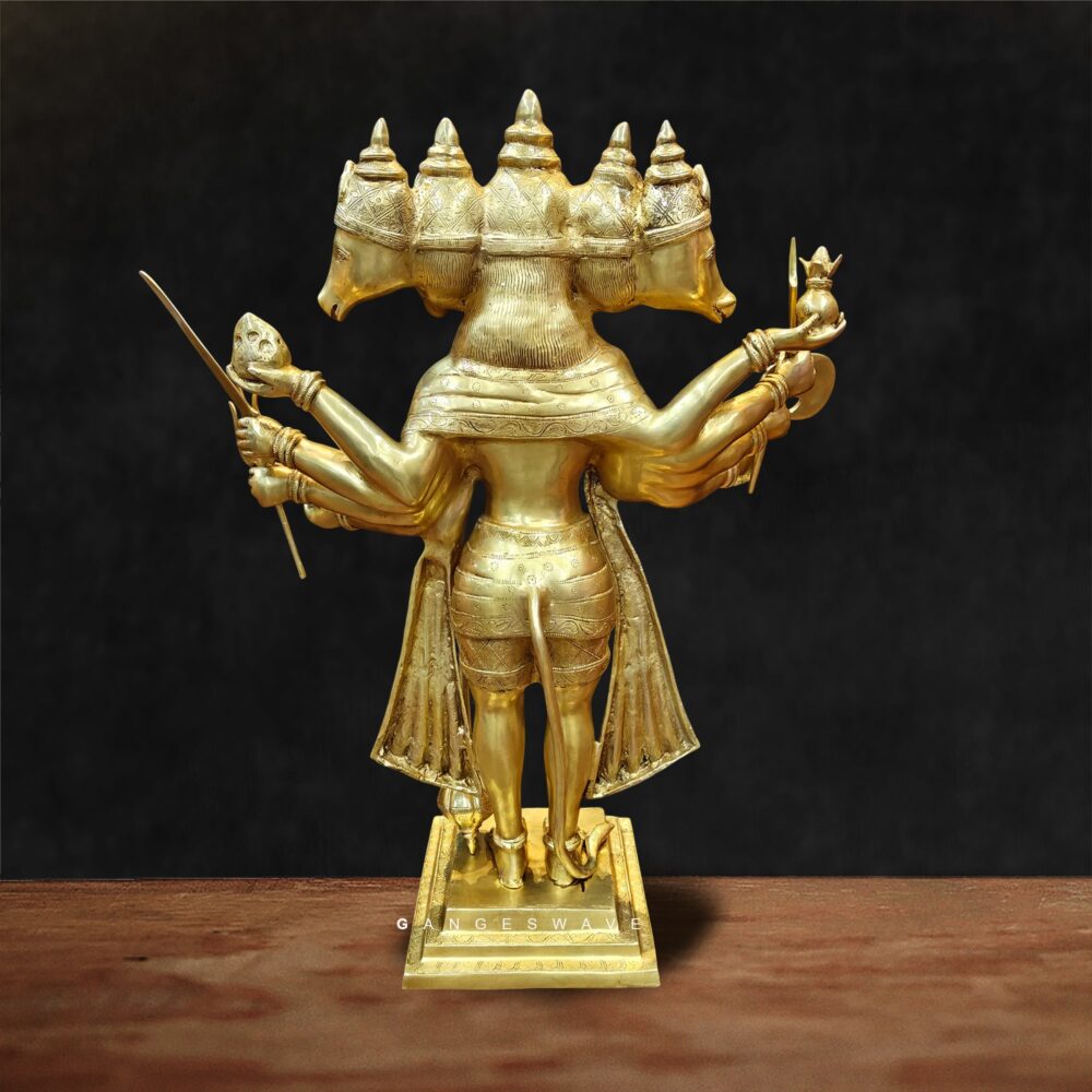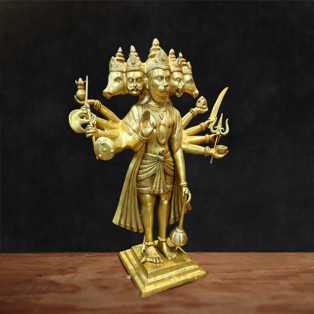 This Panchmukhi Hanuman Brass Statue, an exquisite masterpiece handcrafted by skilled Indian artisans.