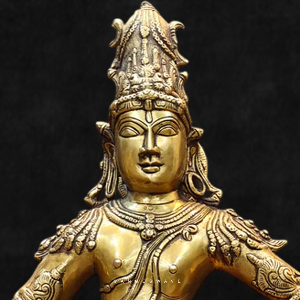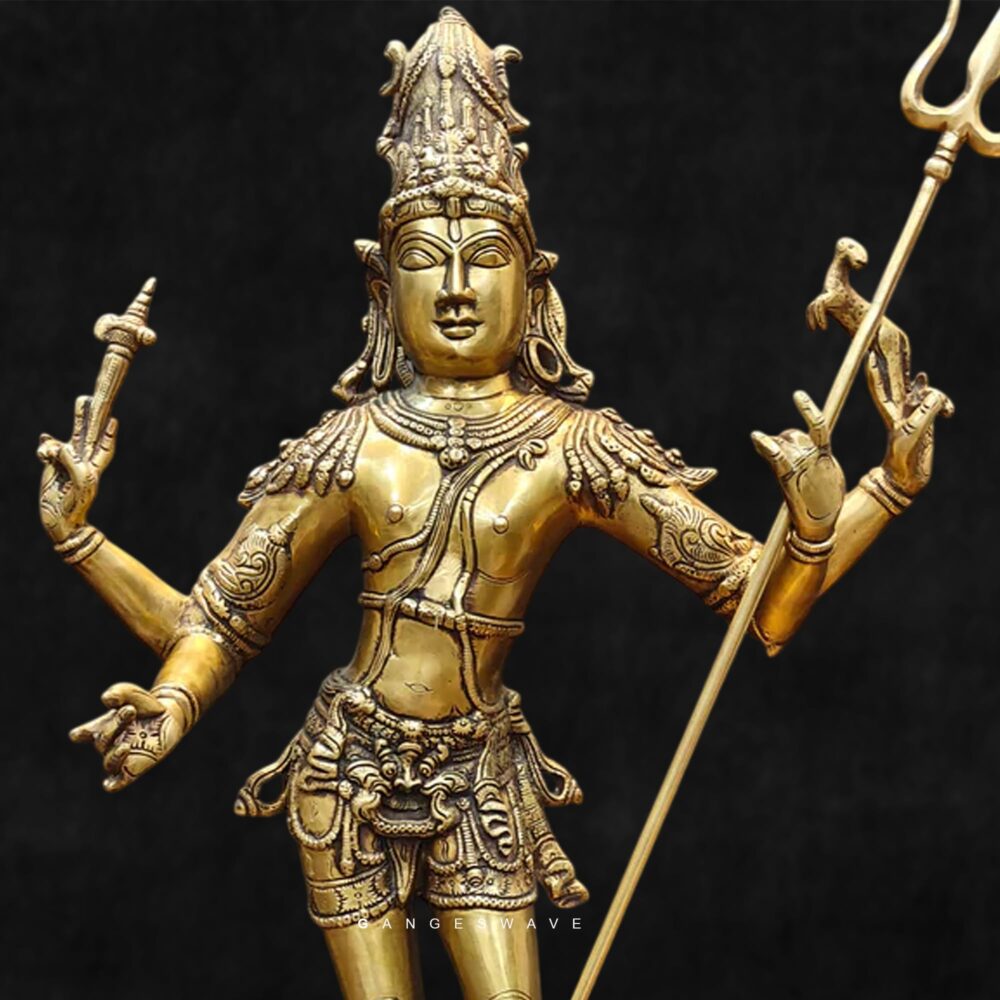 Intricately crafted Brass Lord Shiva Statue, showcasing the powerful form of Mahadev in a majestic stance holding a Trishul. Designed with exquisite detailing and a lustrous antique finish, this statue embodies strength, serenity, and cosmic balance. Ideal for home temples, Vastu decor, meditation rooms, and spiritual gifting.