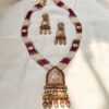 Premium Temple Jewellery Beaded Necklace Set with Jhumka Earrings – Ruby & Pearl Traditional Gold Bridal Set