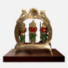 Material: Brass Superfine | Height: 12.5 inches| Width: 10 inches | Depth: 5.5 inches | Weight : 5.5 Kgs | Colour: Golden brass with semi-precious stones stone inlay work | Crafting Technique: Handmade | Origin : India