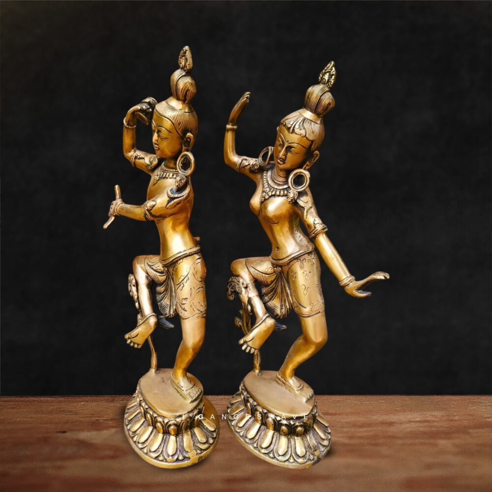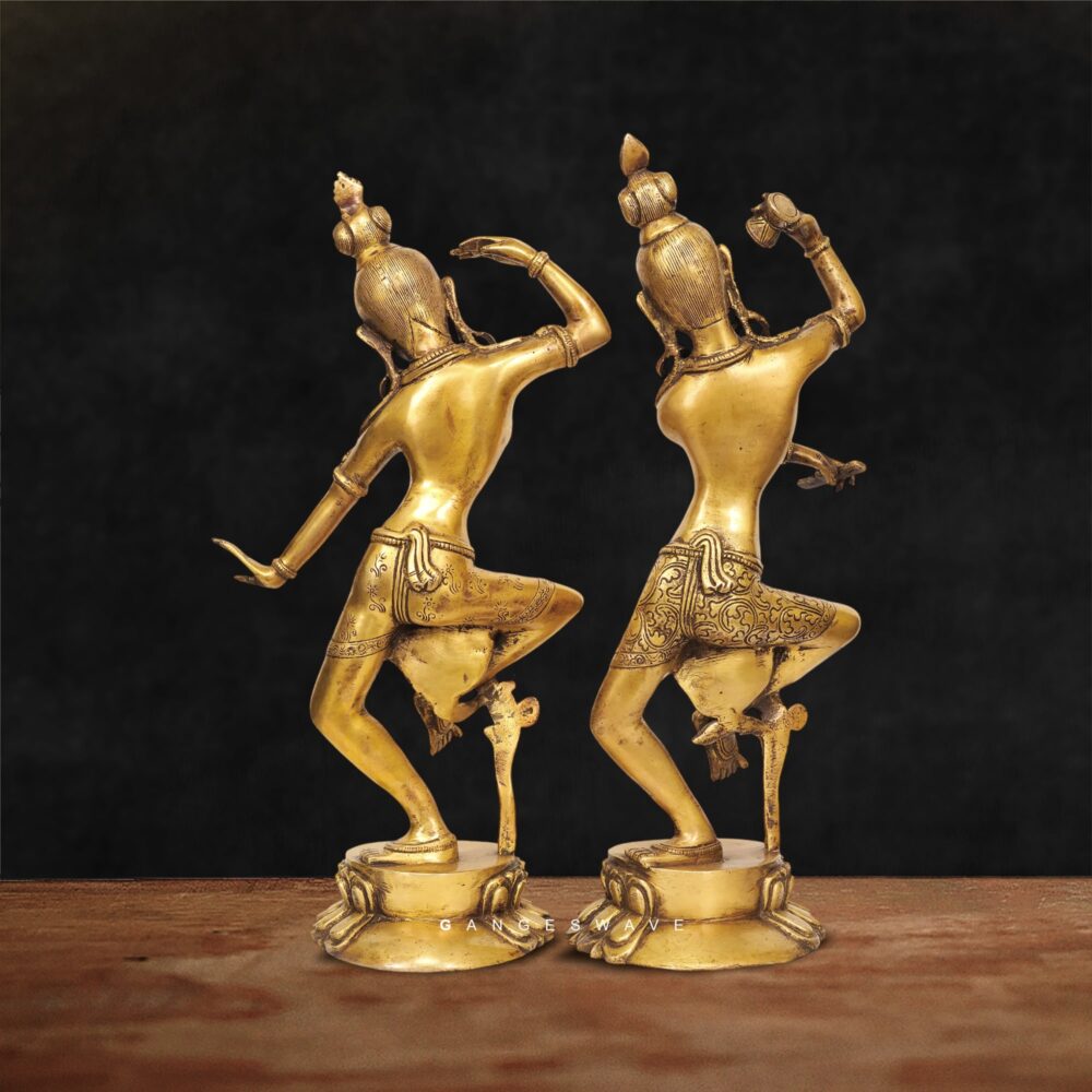 The handcrafted Shiv Parvati brass statue in dancing form is crafted from in superfine brass. It’s a perfect blend of art and spirituality complementing the aesthetic decor.