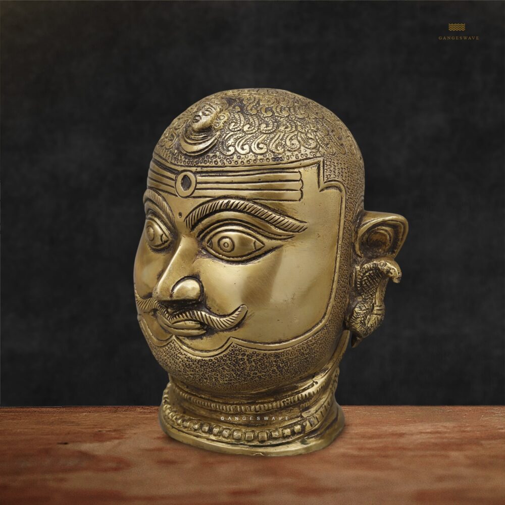 Handcrafted in superfine brass, this beautiful decor of Shiva Mukhalinga is a piece of statement to elevate your interior asthetics.