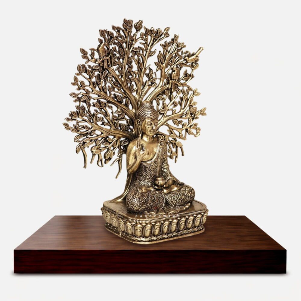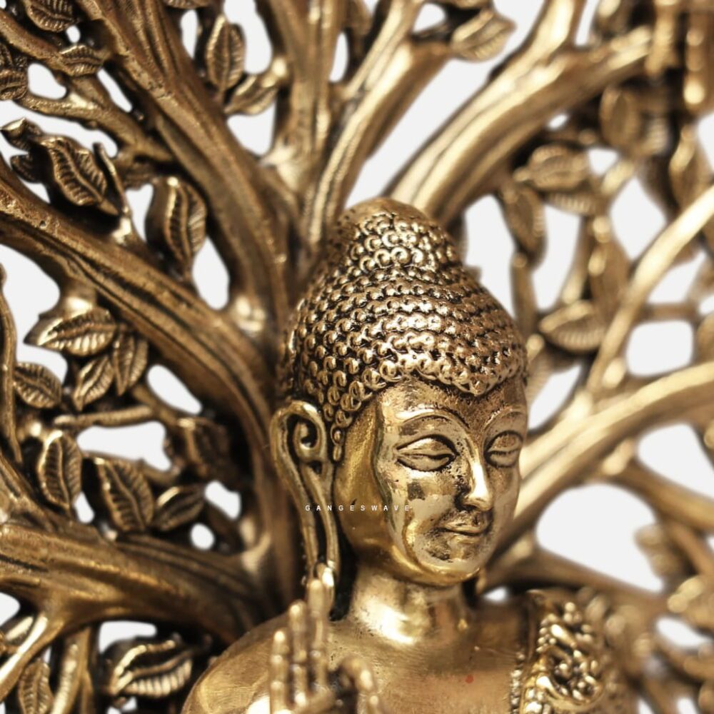 Superfine Brass Buddha with Sacred Bodhi Tree – 6 inches