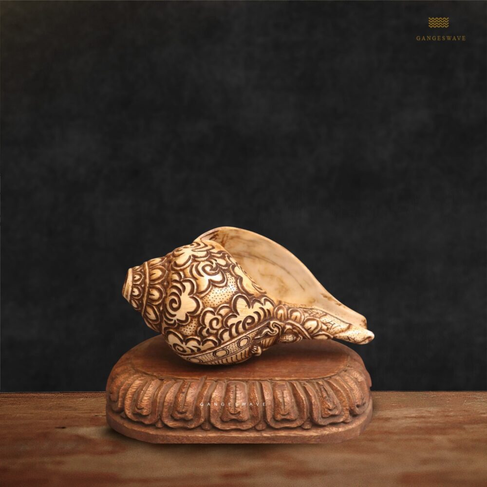 Tibetan Handcrafted Conch Shell with Bramha Carvings