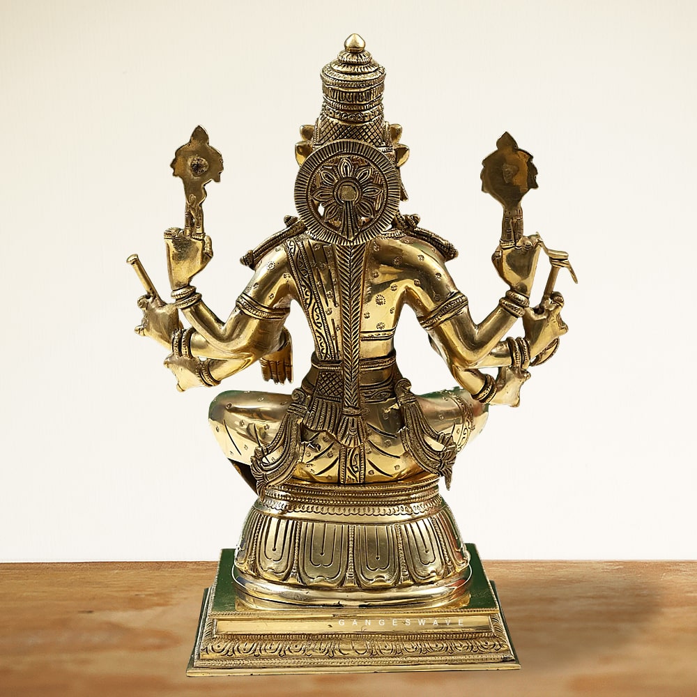 Material: Brass Superfine | Height: 14″ inches | Width: 11″ inches | Depth: 7.5 inches | Weight : 6.5 Kgs | Colour: Golden butter brass| Crafting Technique: Handmade | Origin : India