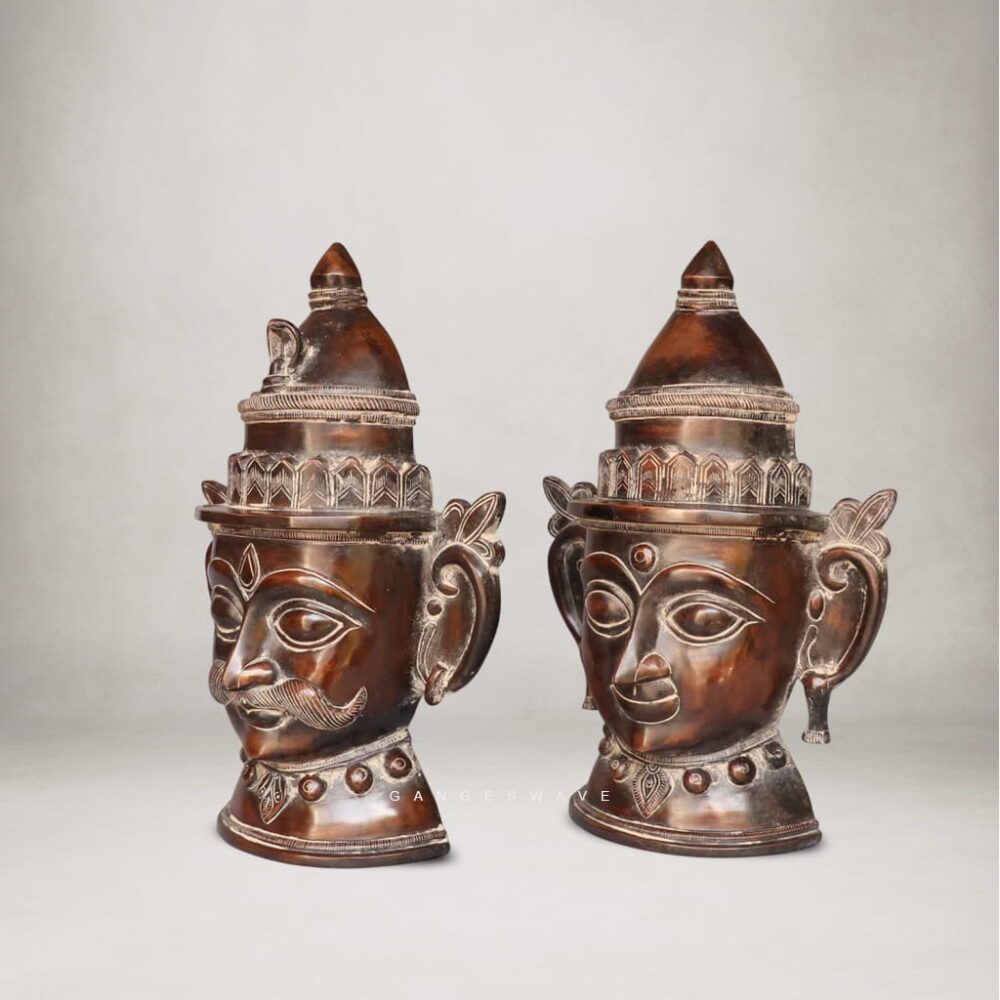 Exquisitely crafted Vintage Finish Shiv-Gauri Mukhlingam Idol Set, a timeless representation of divine harmony and traditional Indian artistry. Designed with intricate detailing and a rich antique copper finish, these sacred figurines beautifully symbolize the union of Lord Shiva and Goddess Parvati, bringing peace, positivity, and spiritual elegance into your space.