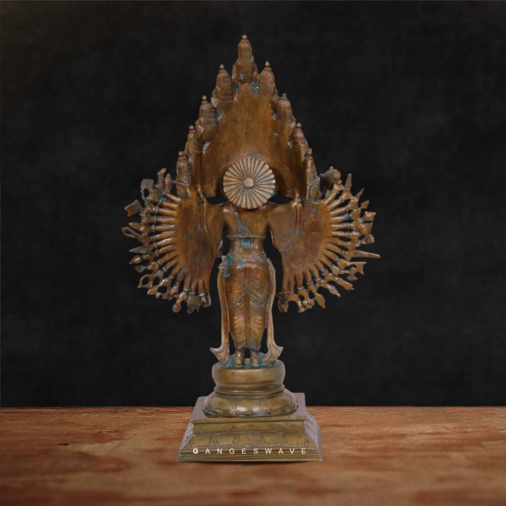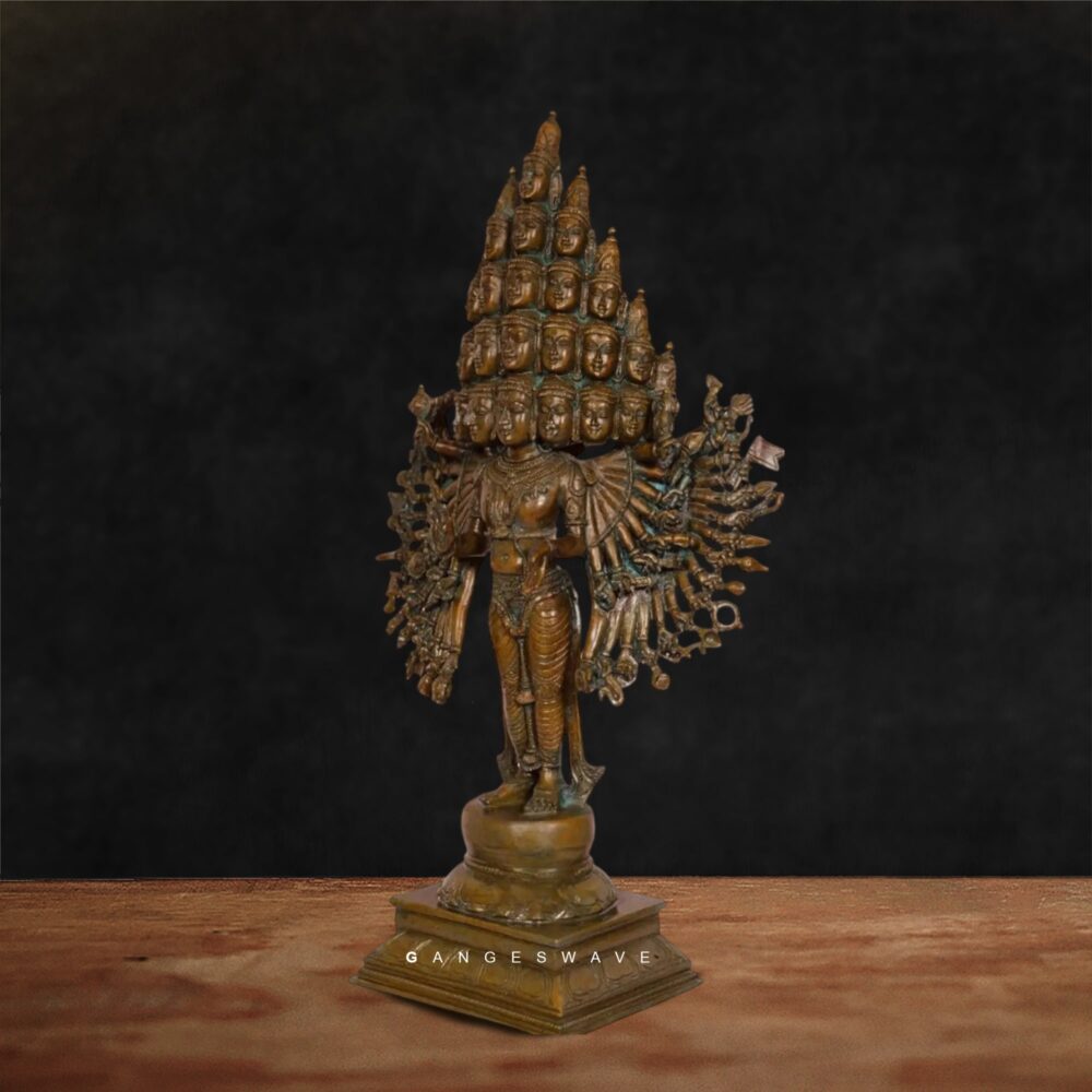 Experience divine grandeur with this handcrafted Brass Vishwarupa Shiva Idol, featuring intricate detailing with multiple heads and arms symbolizing cosmic power. A striking masterpiece for spiritual spaces and art collectors. Perfect for altars, décor, and gifting.